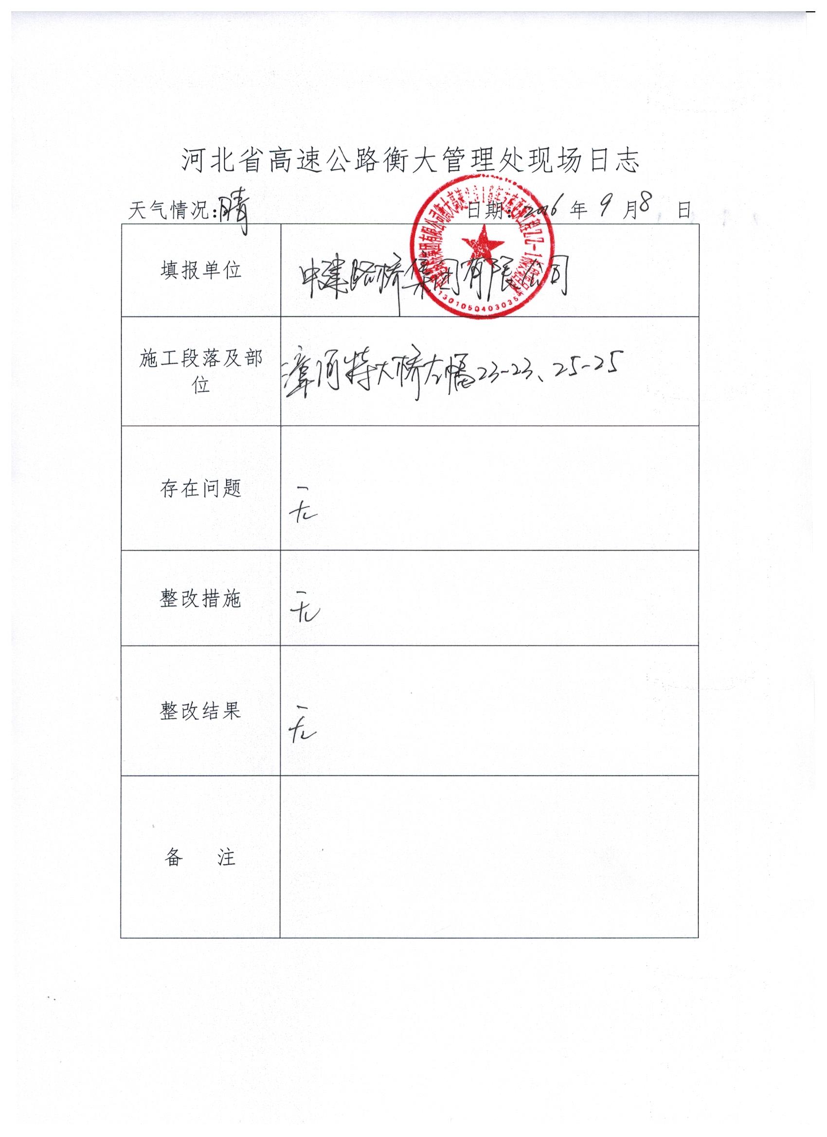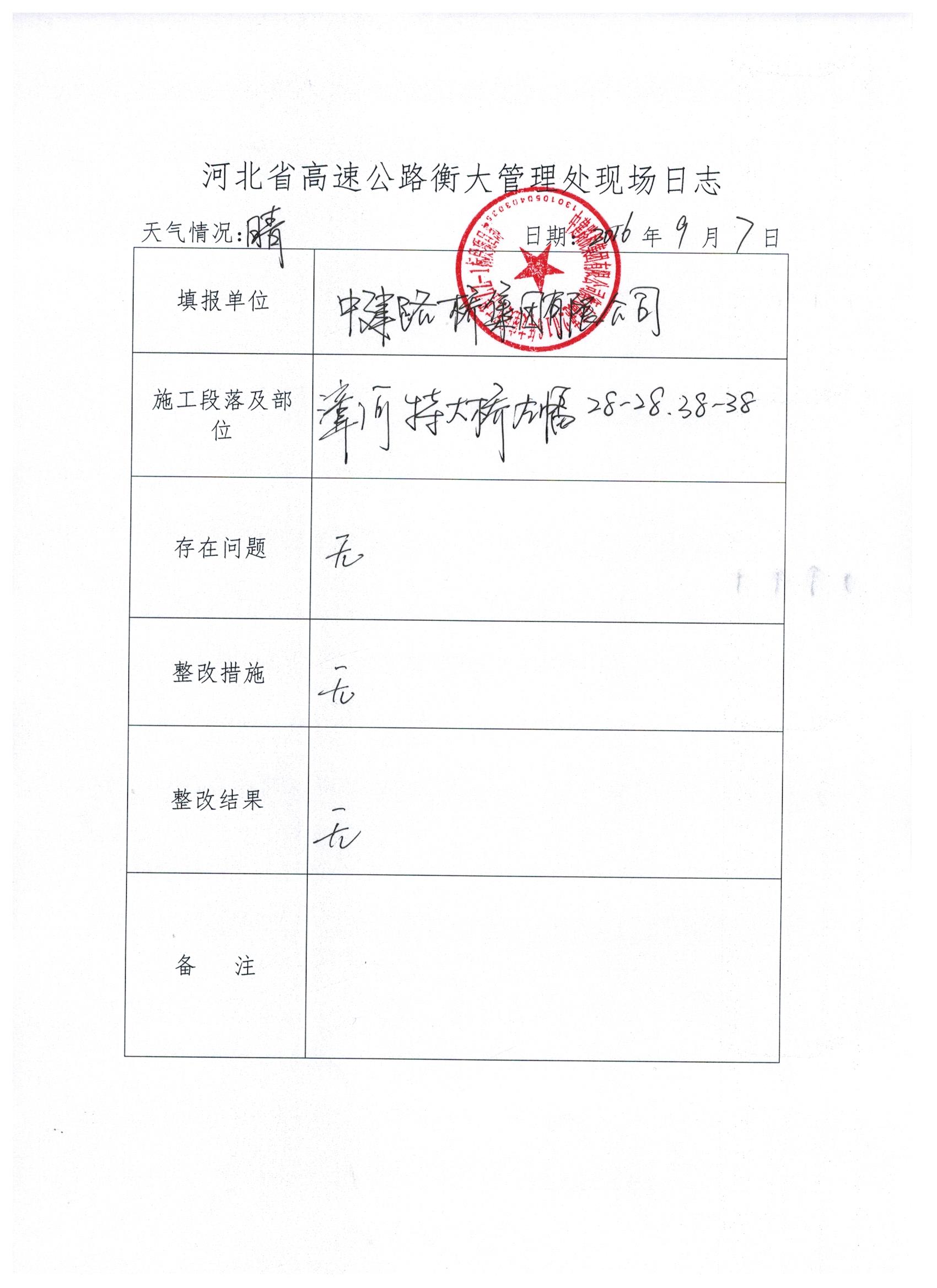大广高速支座更换工程ZZ-1标段现场工作日志
