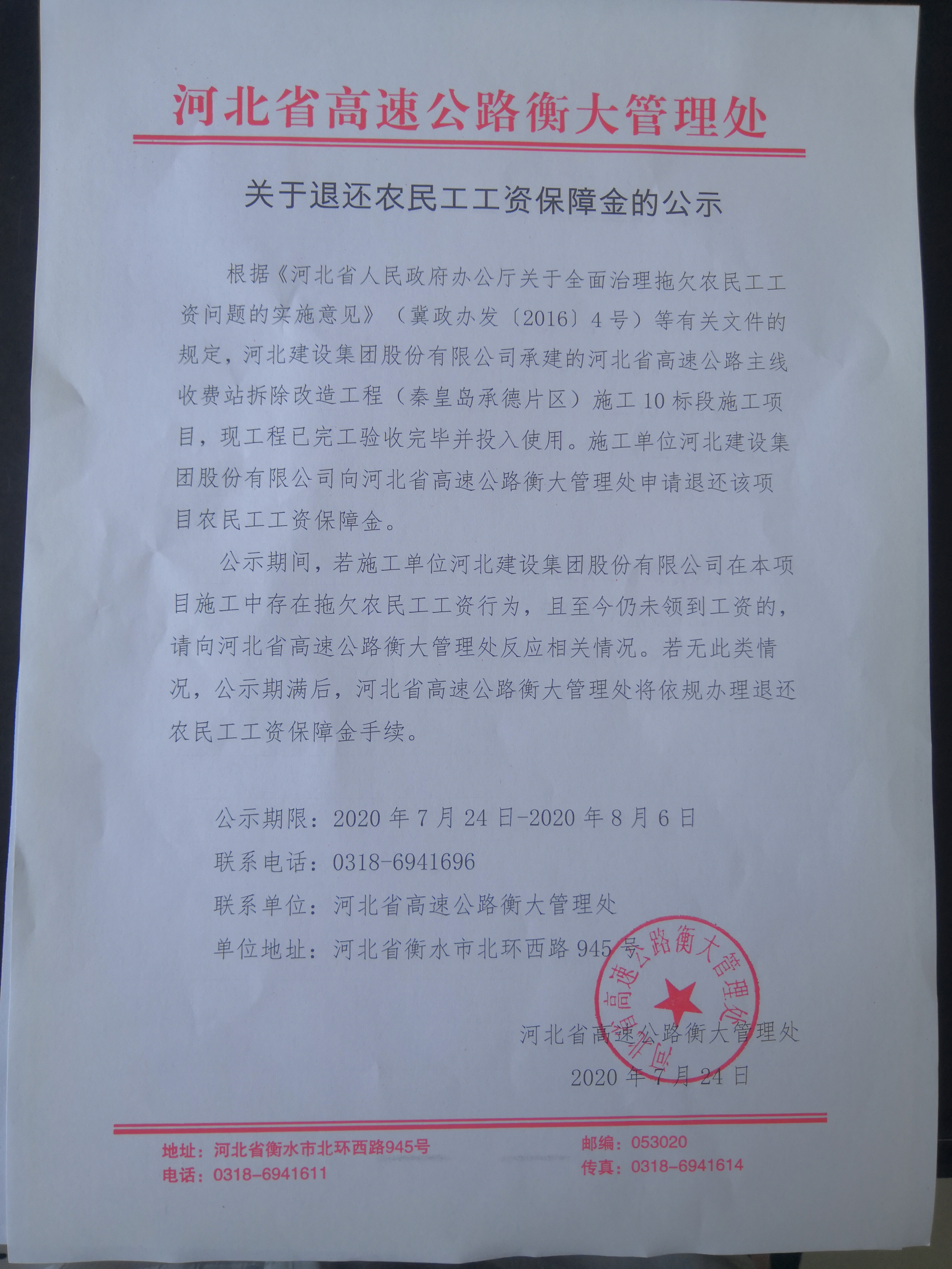 河北省高速公路衡大管理处2020年路基、路面、交安设施养护工程4标段询比结果公示