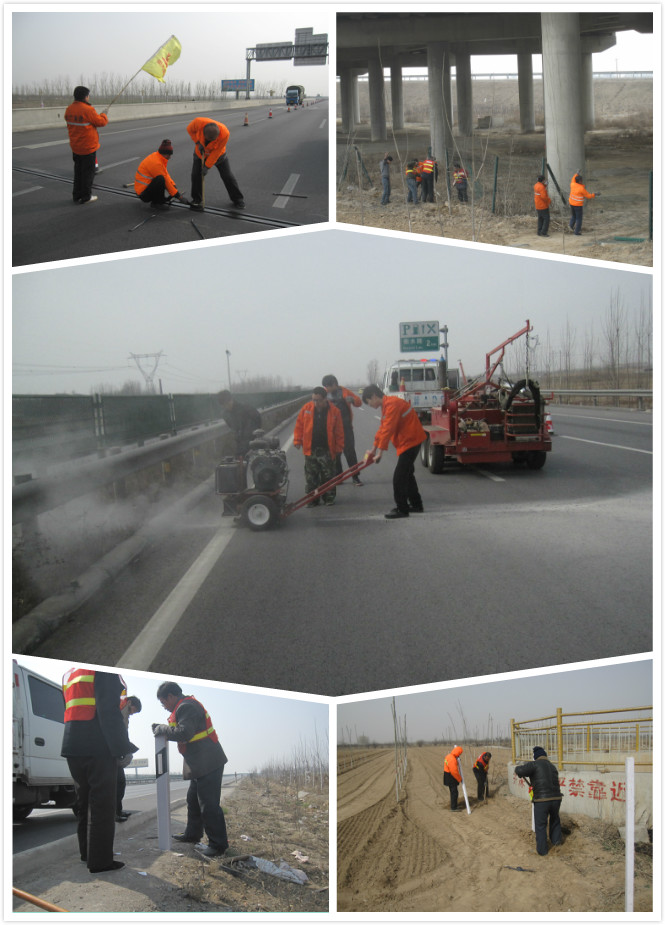 随着天气好转、气温回升,为打造“畅、安、舒、美”的通行环境,南宫养护工区抢抓适宜时节,积极推进春季养护工作全面展开。坚持“预防为主、防治结合”的工作方针,扎实做好春季各项养护工作:一是加大日常养护工作力度,组织人员对辖段内路基、路面、边坡、防撞护栏等沿线设施进行一米不漏的徒步检查,及时发现问题,及时进行修复,并做好记录,确保养护巡查质量;二是做好预防性养护工作,加大路面裂缝及坑槽的处治力度,根据天气情况及工期要求,合理安排路面灌缝工作;三是加强桥梁养护,对辖段内的桥梁进行了一次拉网式细致检查,发现问题及时处理,并对破损的桥梁伸缩缝止水带进行更换;四是加强急流槽、泄水孔、涵洞、渗水井等排水设施的检查和维护,及时对渗水井周围被破坏的安全设施,刺铁丝隔离栅及立柱进行补齐修复;五是及时和养护维修人员进行沟通,提高作业人员的安全意识,并加强施工现场的监督力度,严把工程质量和施工安全。