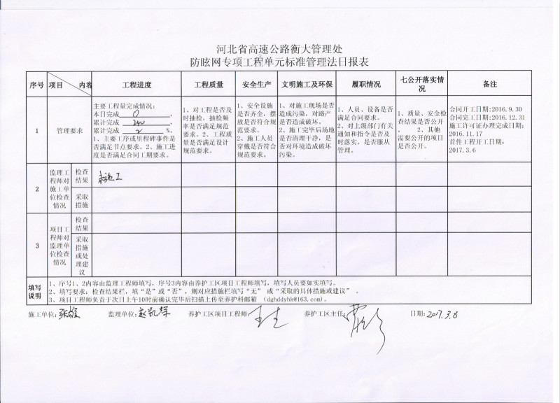 防眩网改造工程3标日报表3.8