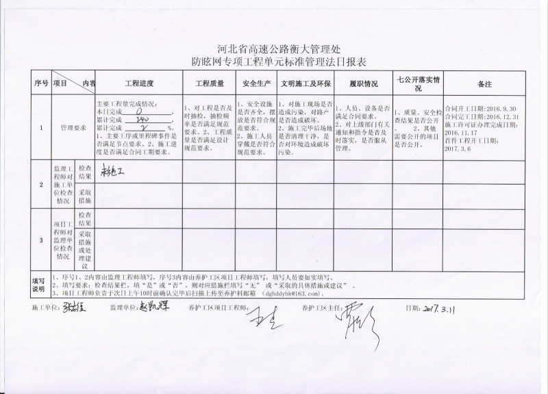 防眩网改造工程3标日报表3.11
