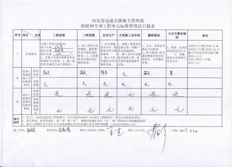 防眩网改造工程3标日报表3.28